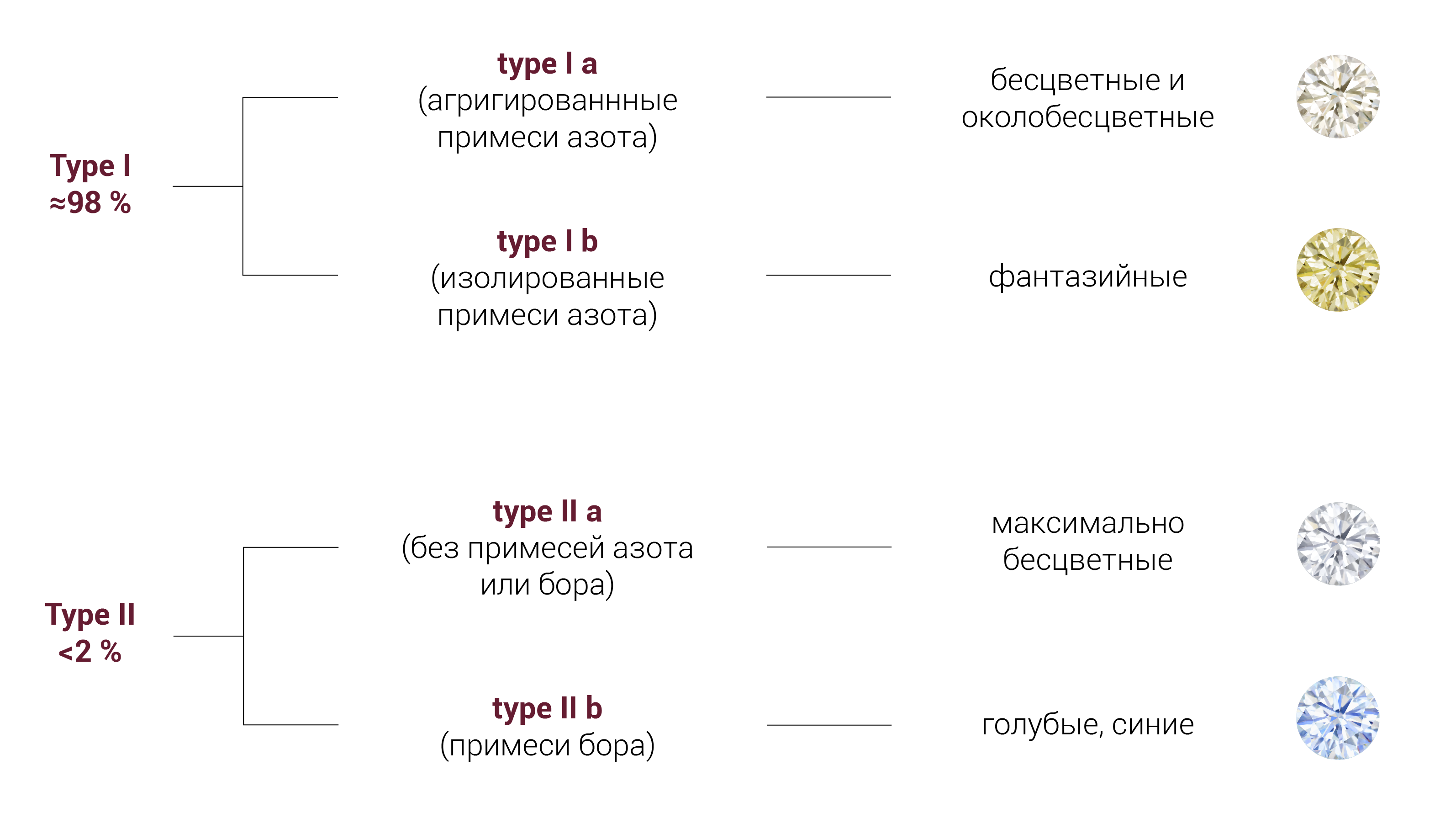Классификация алмазов по типам.