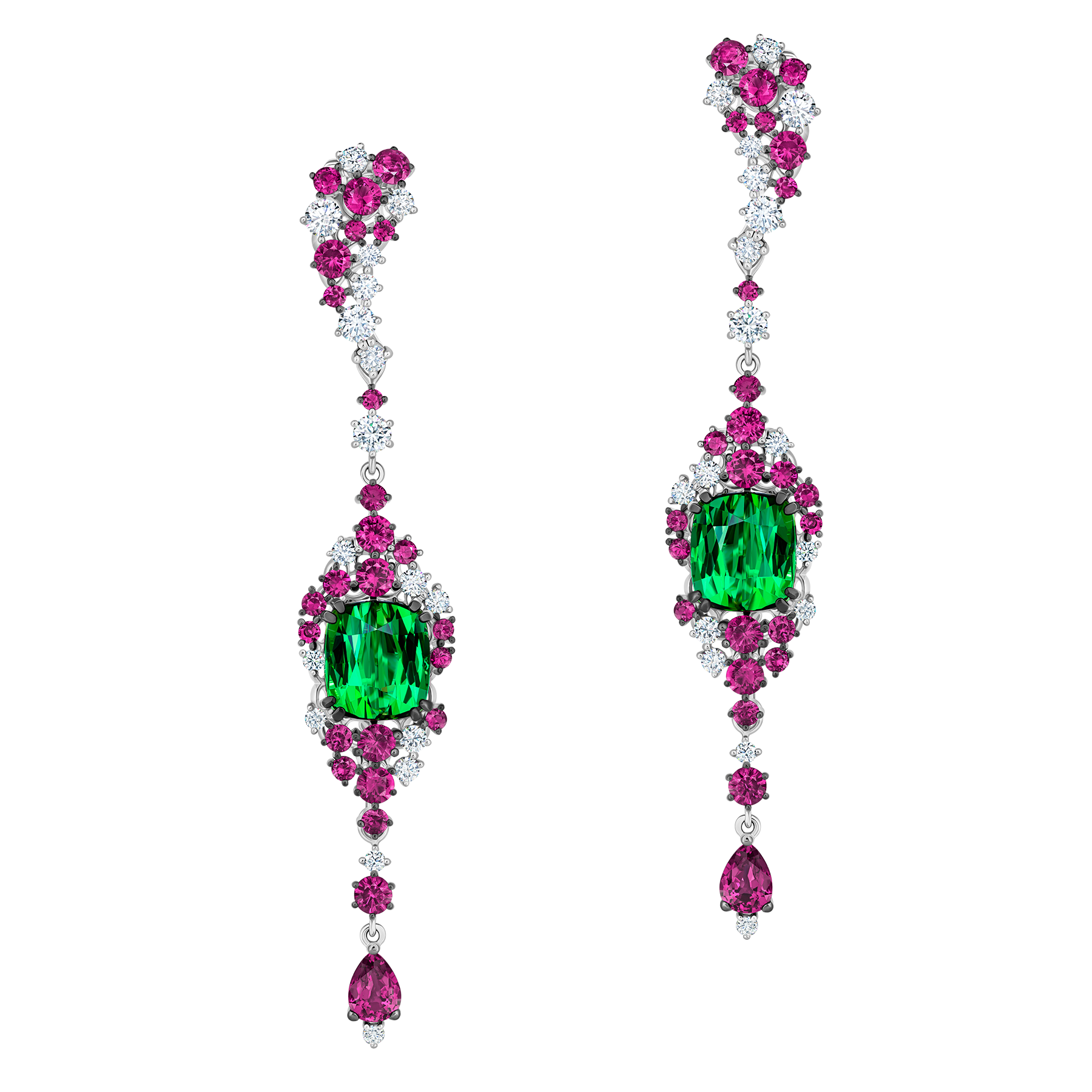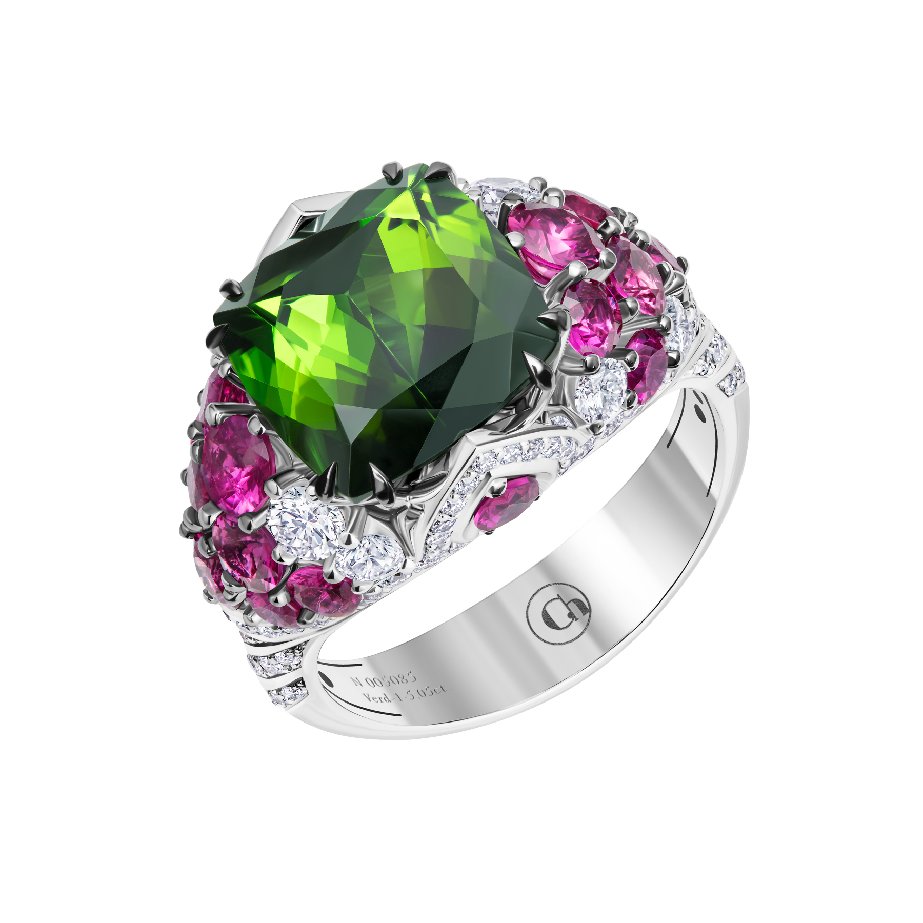Совсем не редкость, те случаи, когда камни становятся источниками вдохновения. Их красота и сияние, калейдоскоп красочных мотивов отражают потрясающее природное очарование. Выразительный дизайн сета «Филиппины» – яркий союз спектральных цветов – зеленого и красного. Авторы старались отразить в украшениях живописные нетронутые пейзажи островного государства, Асимметричная композиция из рубинов и бриллиантов дополняет солирующие турмалины верделиты в серьгах и кольце. Серьги отличаются трансформацией, преобразуясь в четыре разных вариации от лаконичной до торжественной.