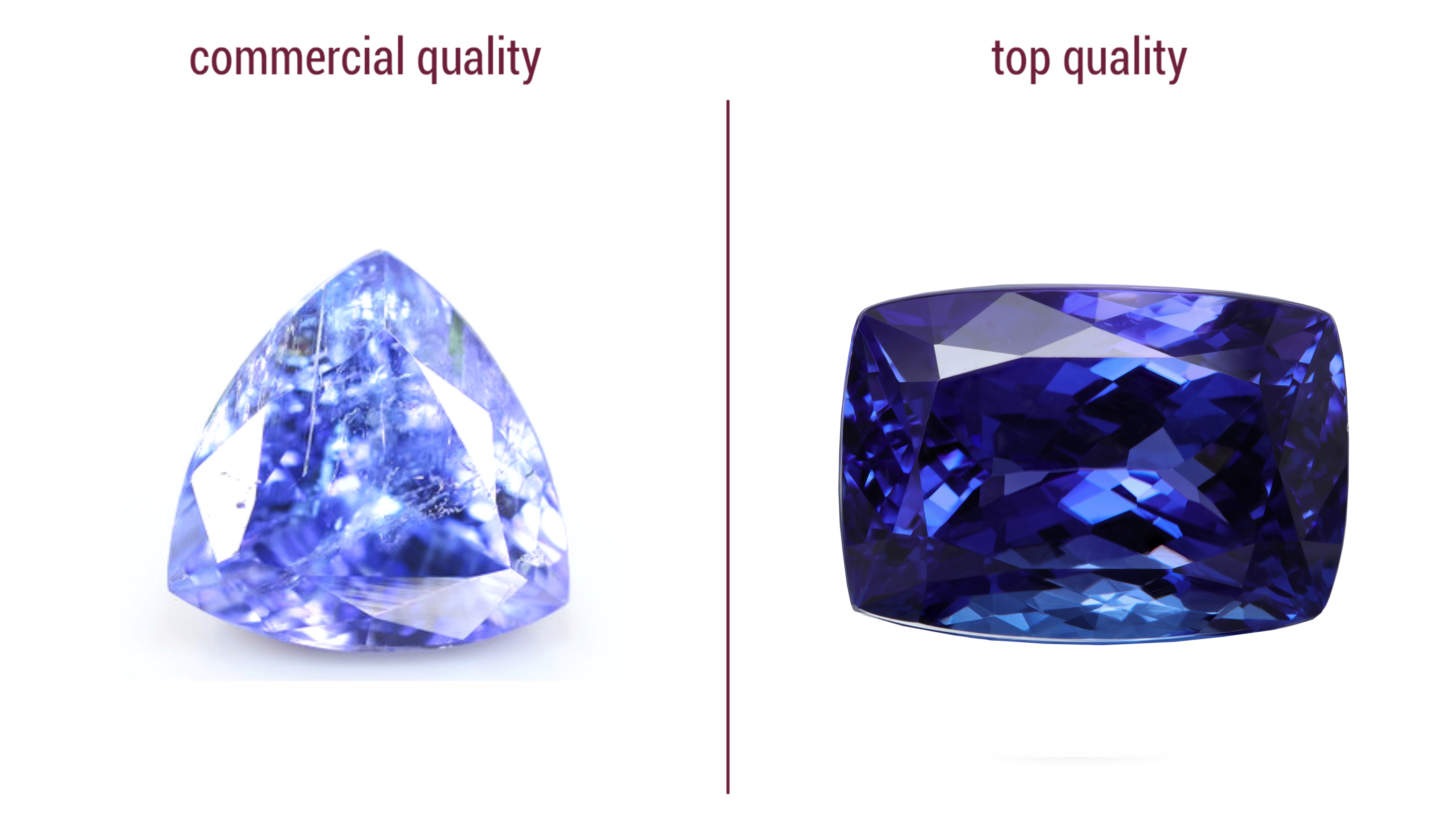 Система оценки качества минерала базируется на принципе 4C: цвет, чистота, вес и огранка. Цвет и степень его насыщенности – основополагающая характеристика танзанита. Его палитра состоит из синих и фиолетовых оттенков. Однако, в большинстве случаев добытые минералы демонстрируют желтые или коричневые оттенки, проявляя привлекательный сине-фиолетовый цвет только посредством нагрева до 400-650 градусов Цельсия. Для описания насыщенности используется градация из 6 категорий: Exceptional (исключительный), Vivid (яркий), Intense (интенсивный), Moderate (умеренный), Light (светлый) и Pale (бледно-окрашенный).