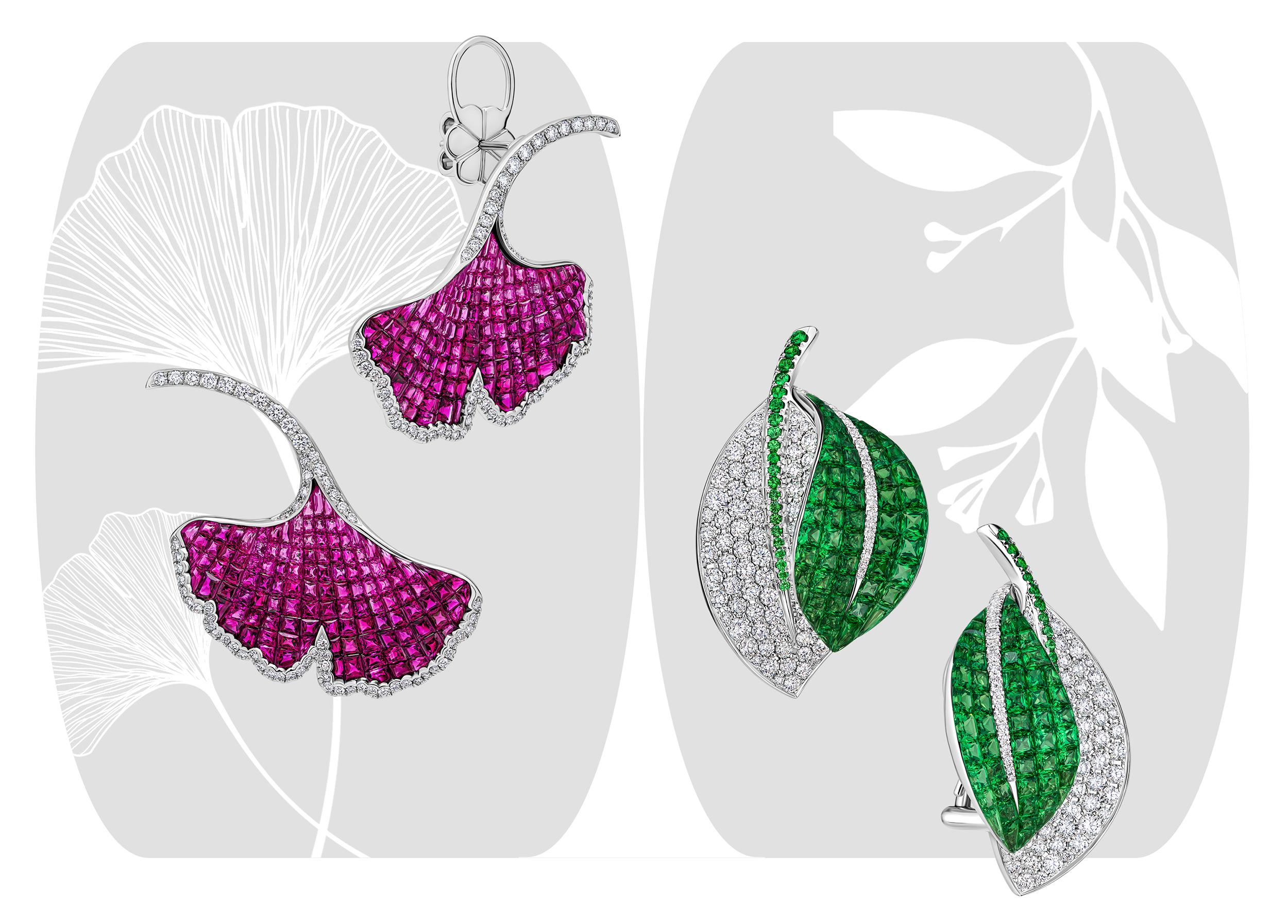 Природа и технологии, эти понятия не противоречат друг другу, считают эксперты CHAMOVSKIKH. Именно поэтому в коллекции Invisible Inlay так много украшений с флористическими мотивами. При создании коллекции ювелирный дом использовал сложнейшую «невидимую» закрепку драгоценных камней, которая и дала имя лимитированной серии. При данной технологии, каждый камень устанавливается на тонкие планки, в точности повторяющие форму украшения. Таким образом скрытая металлическая конструкция фиксирует драгоценные камни без видимой оправы, поражая воображение визуальным эффектом и безупречностью технического решения.