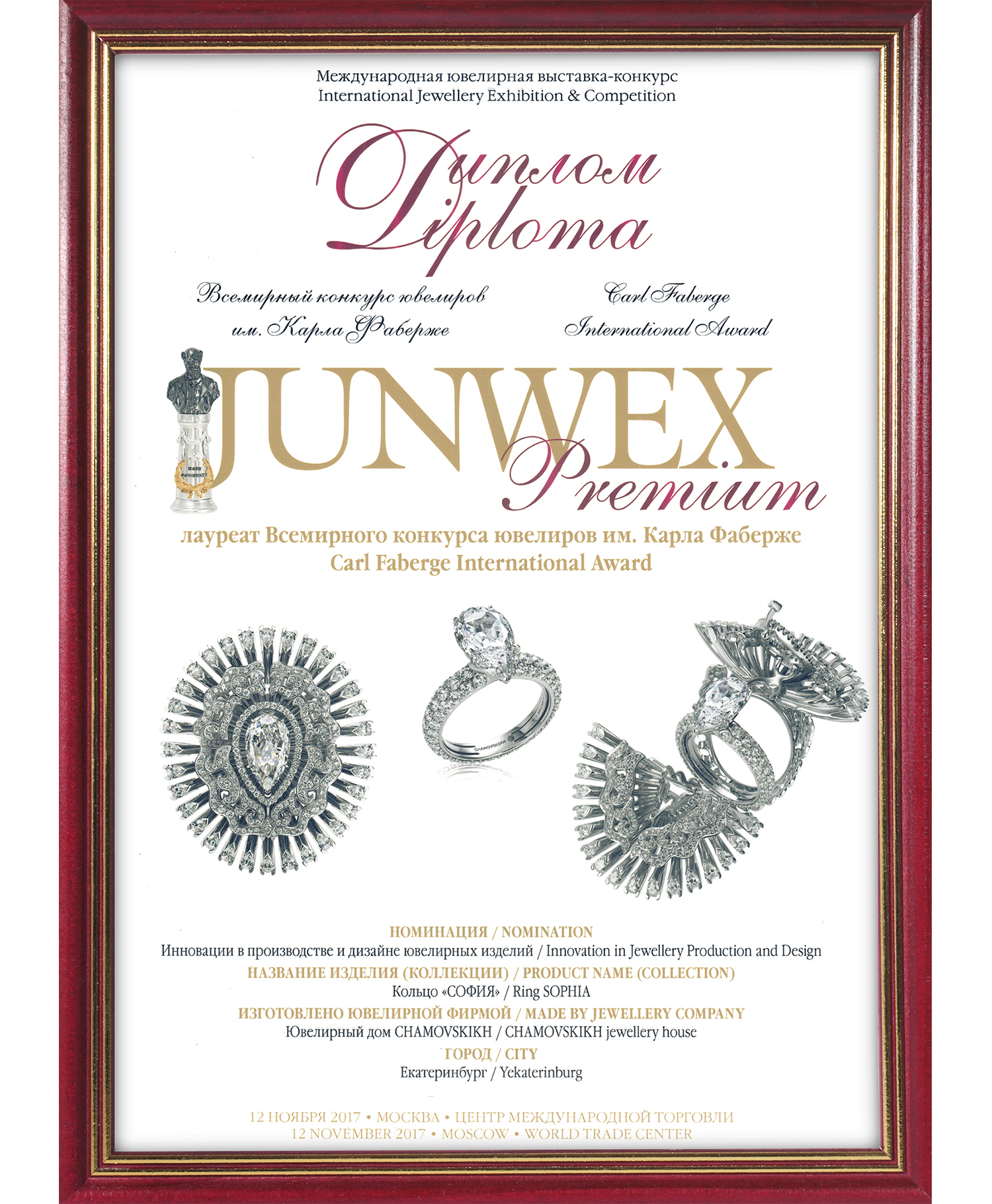 Диплом Junwex Москва. Гран-при 2017г. Кольцо "София"