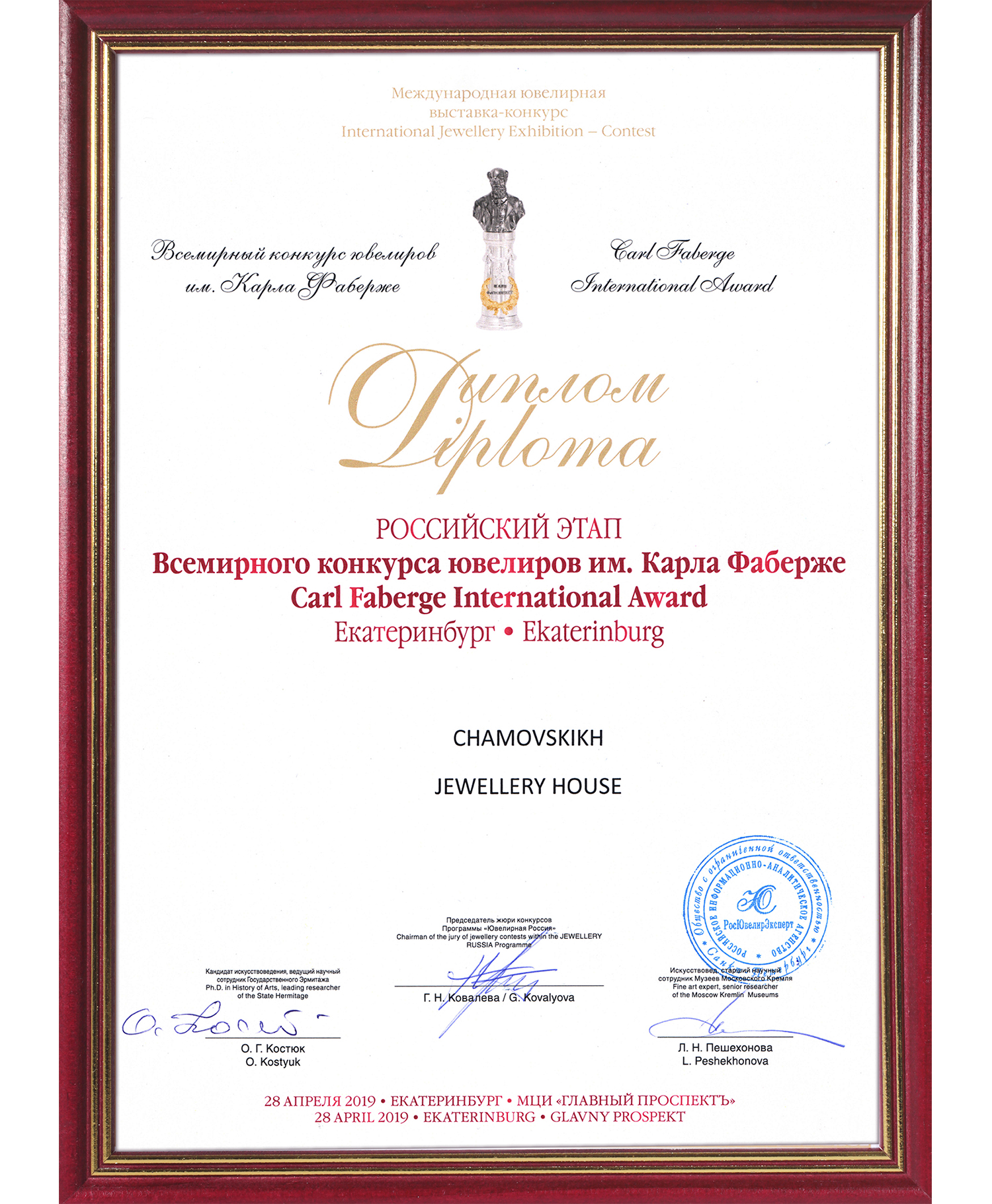 Диплом лауреата всемирного конкурса имени Карла Фаберже