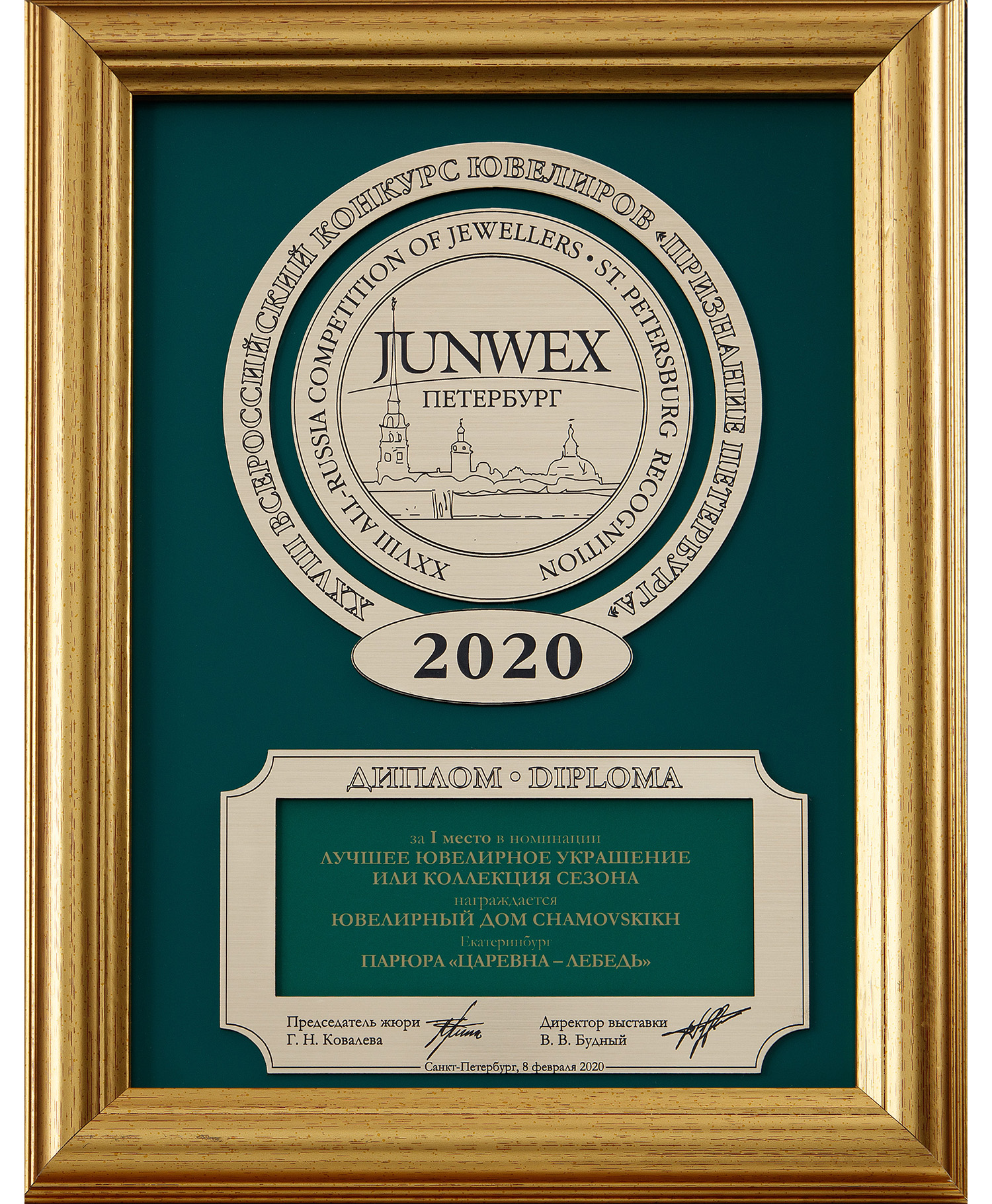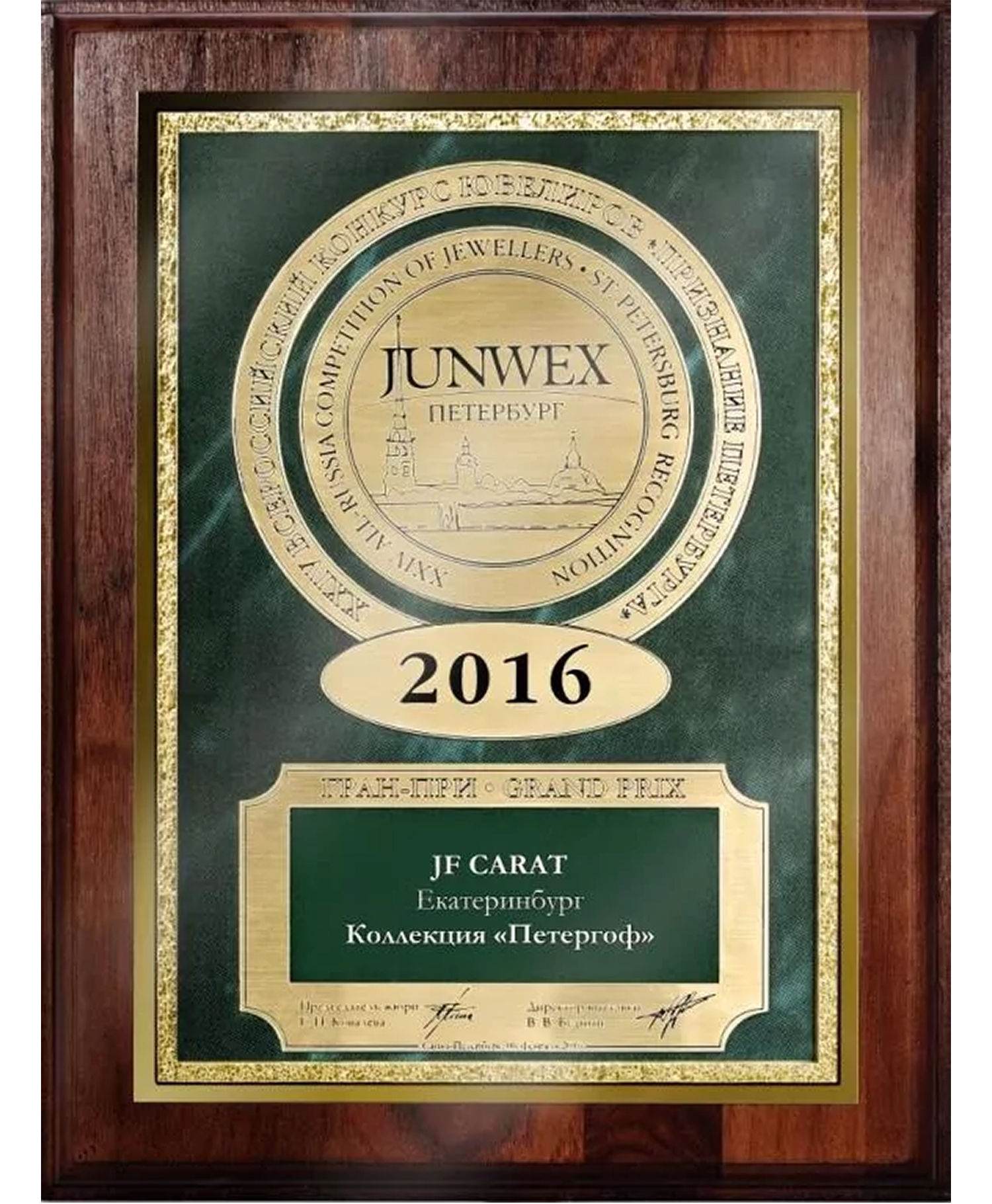 Диплом Junwex Петербург. Гран-при 2016 г. Коллекция "Петергоф"