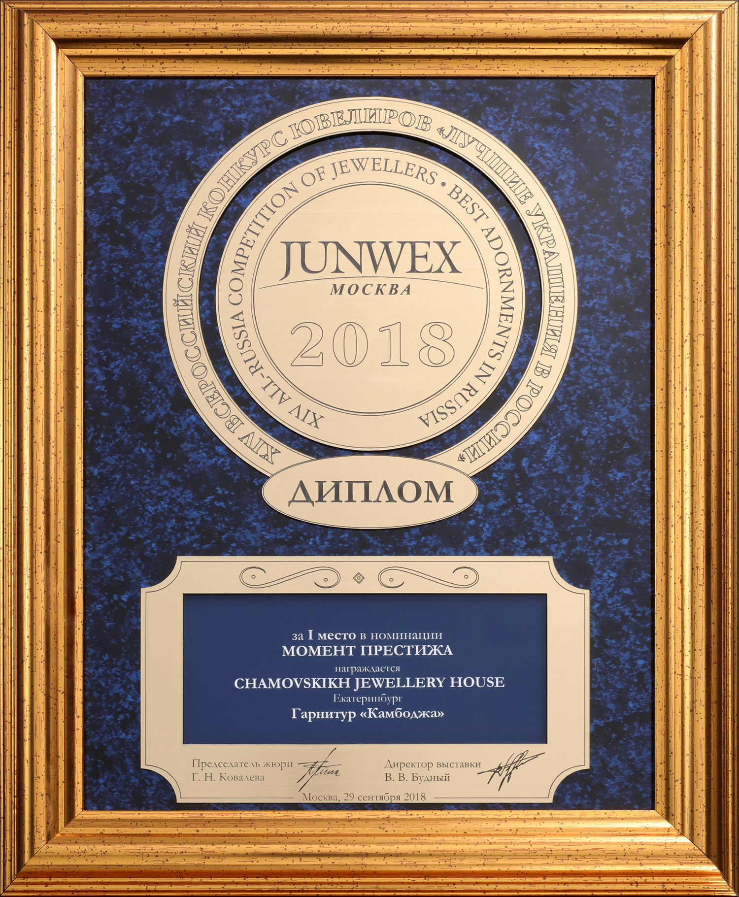 Диплом JUNWEX Москва за 1 место в номинации "Момент престижа" 2018г. Гарнитур "Камбоджа"