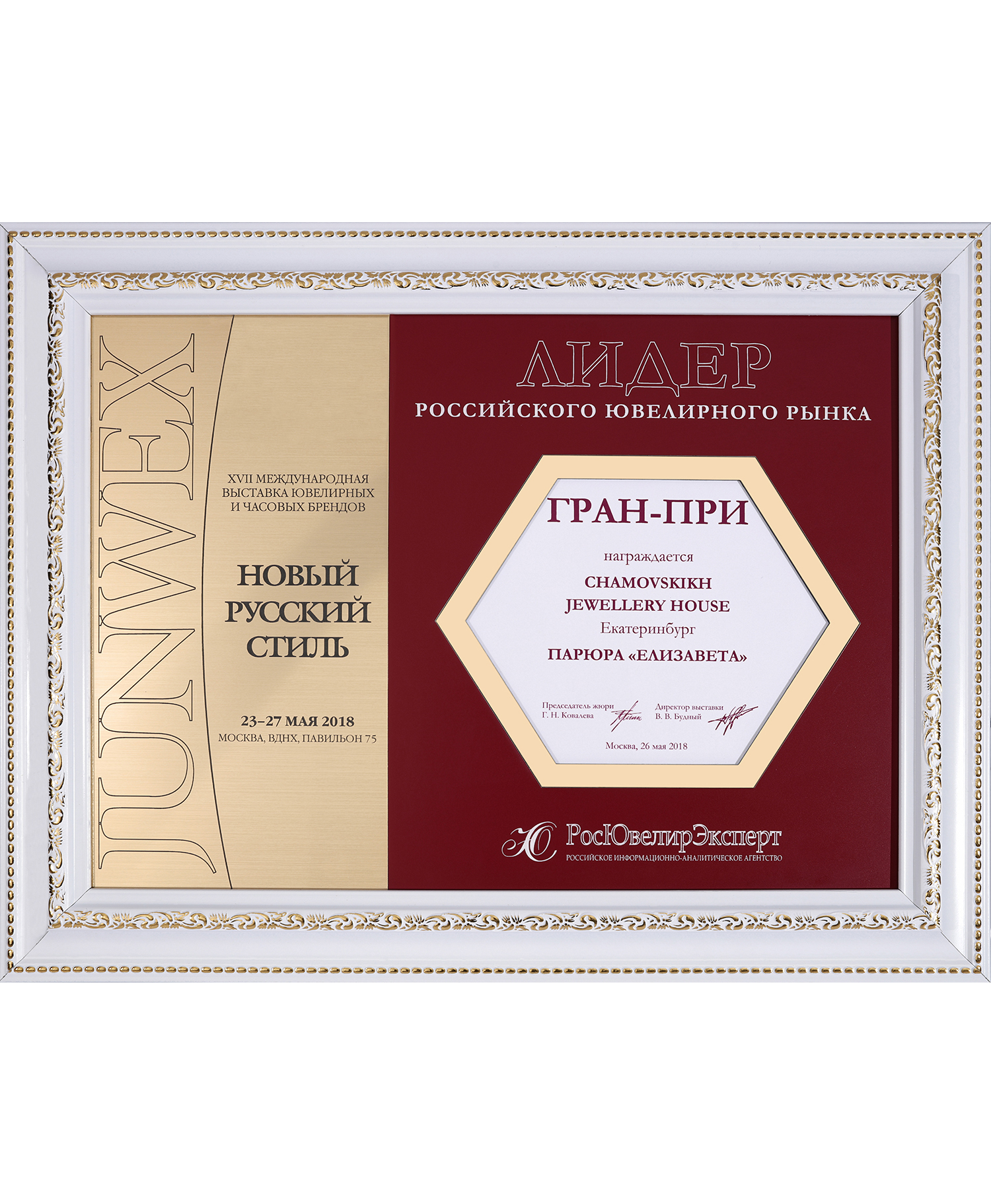Диплом Junwex Москва. 1 место в номинации "Ювелирные трансформации" 2016 г.