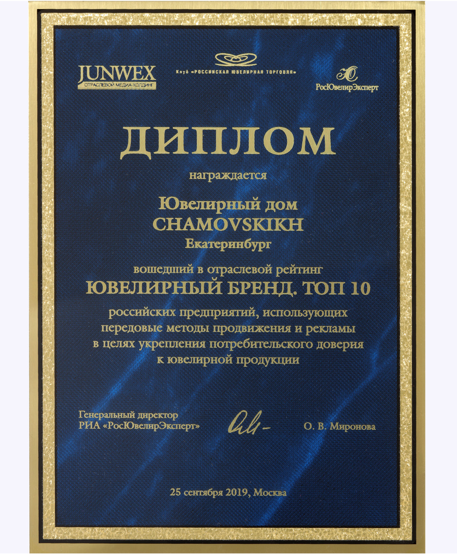 Диплом ювелирный бренд Топ-10