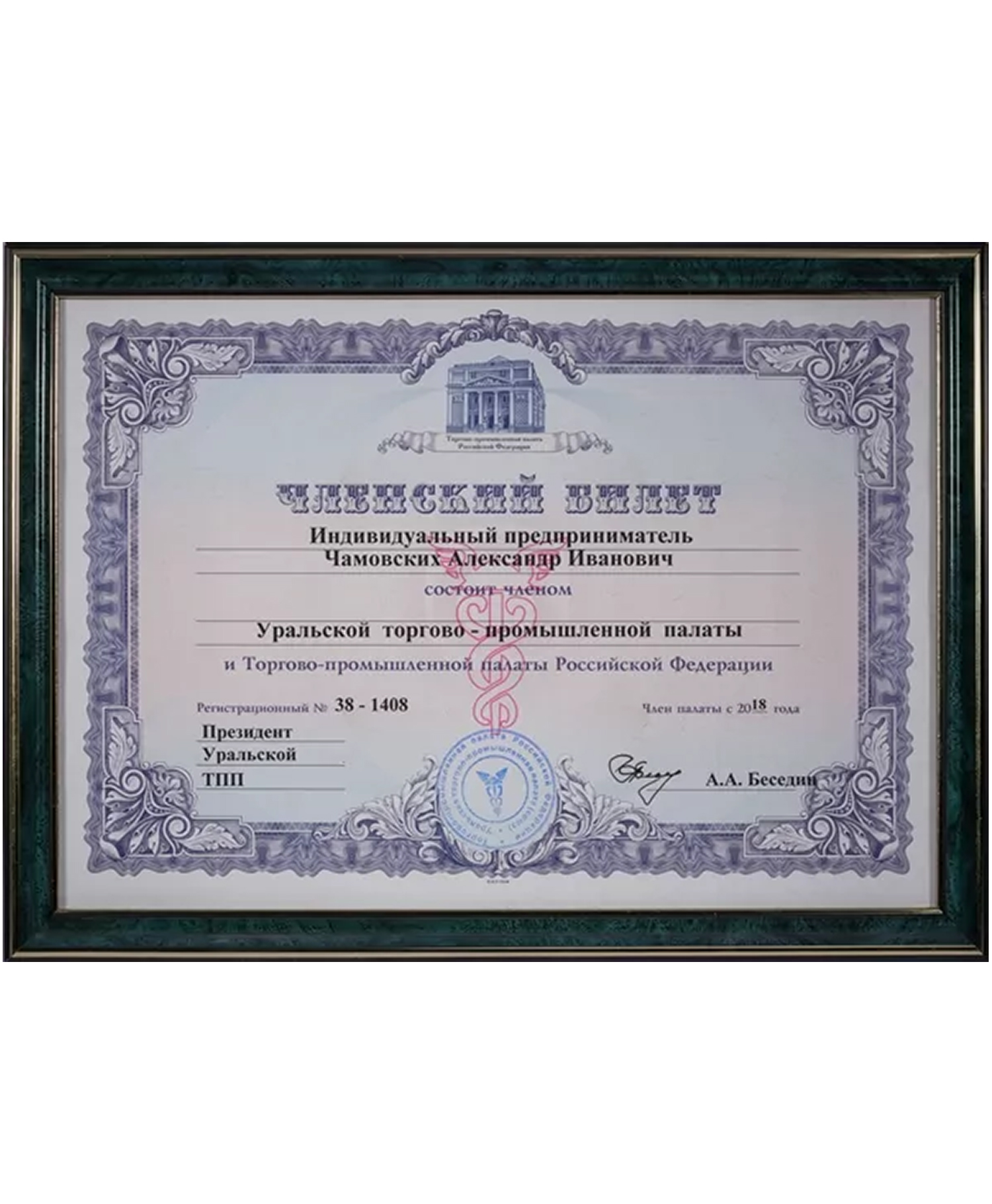 Членский билет уральской торгово-промышленной палаты и торгово-промышленной палаты России