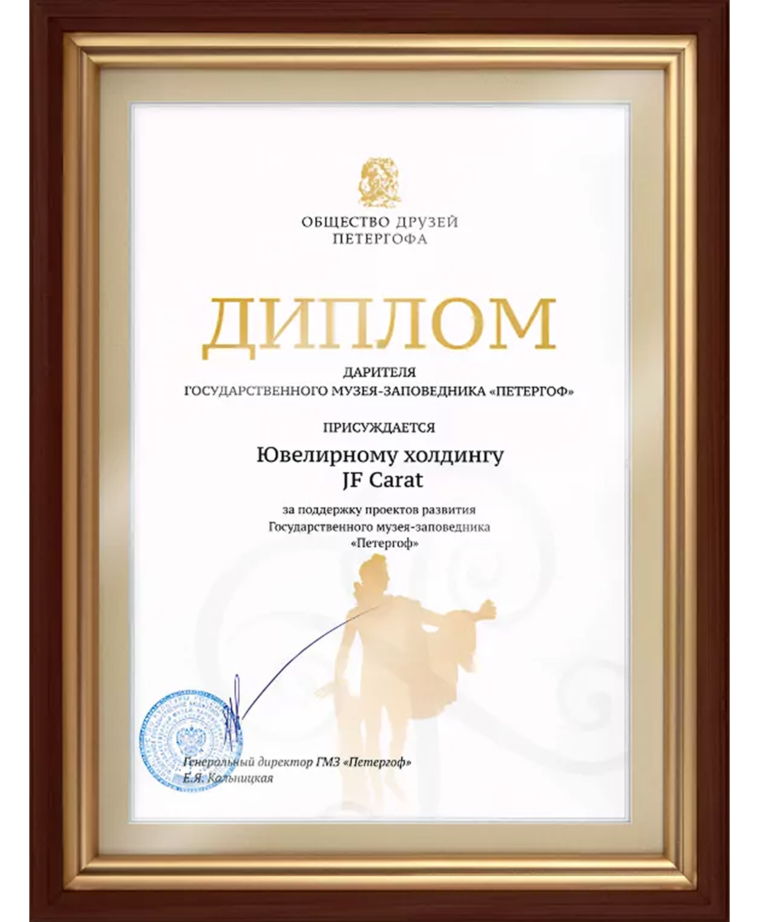 Диплом дарителя Государственного музея-заповедника "Петергоф"