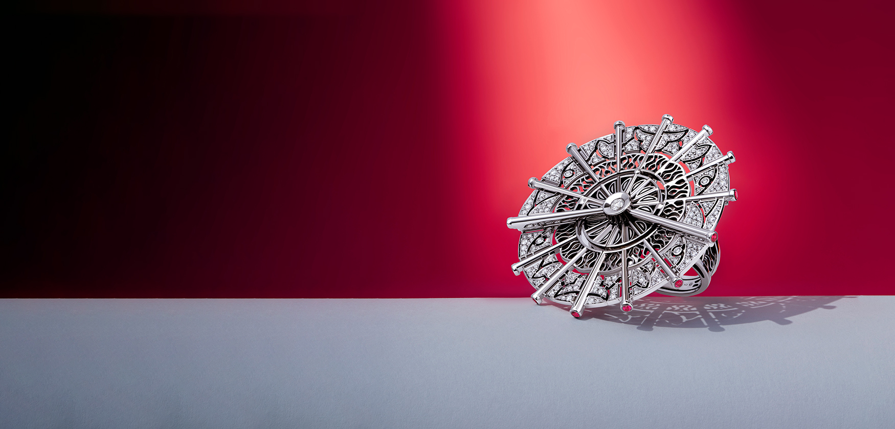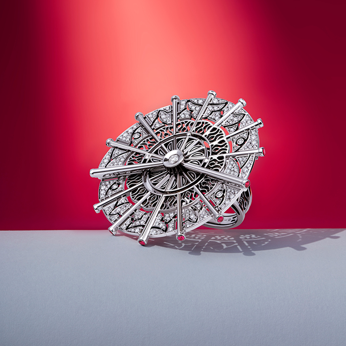 Дизайн и смысловое содержание драгоценностей вторят символам театра, который воплощает собой и зрительный зал, и неизменный театральный атрибут — веер. Коллекция «Искусство флирта» заключает в себе роскошный флер балов и торжественных приемов. Благодаря своей глубокой концептуальной составляющей и технологическим новациям украшения великолепно продемонстрируют богатый духовный мир и просвещенность обладательницы.