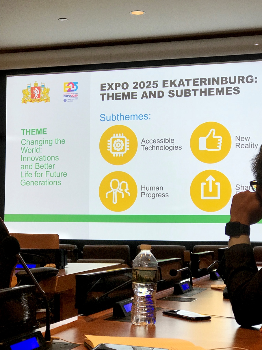 Российская делегация также представила на мероприятии заявку на проведение Всемирной выставки ЭКСПО-2025 в Екатеринбурге.
