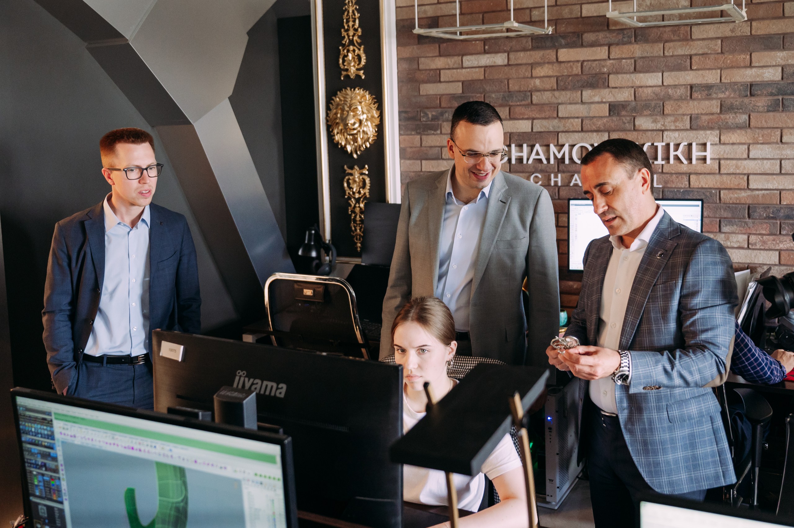 Пресс-тур по ювелирному дому CHAMOVSKIKH состоялся в рамках деловой программы Форума «Тонкие грани». Более 50 представителей ведущих СМИ, блогеров и инфлюенсеров воспользовались возможностью увидеть, как устроено высокотехнологичное производство полного цикла. Экскурсию для журналистов провели основатель и глава Дома Александр Чамовских, а также вице-президент компании Юрий Толмачев.